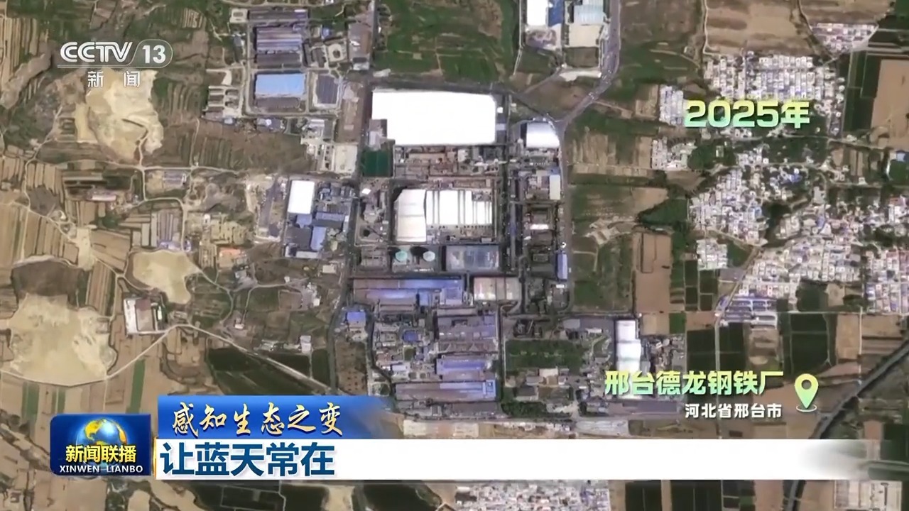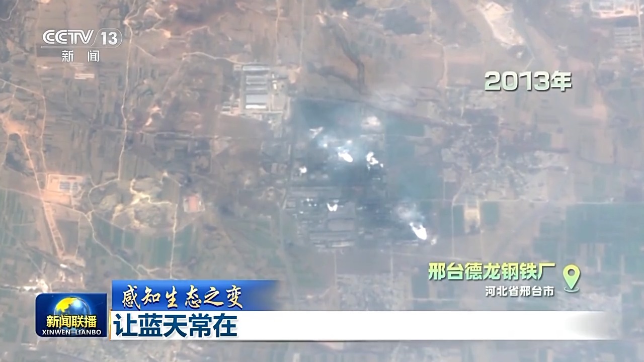 这是那时,环境监测卫星拍到的德龙钢铁厂,雾霾最严重的时刻险些看不出厂区综合。而如今,却是明晰可见,绿意葱葱。