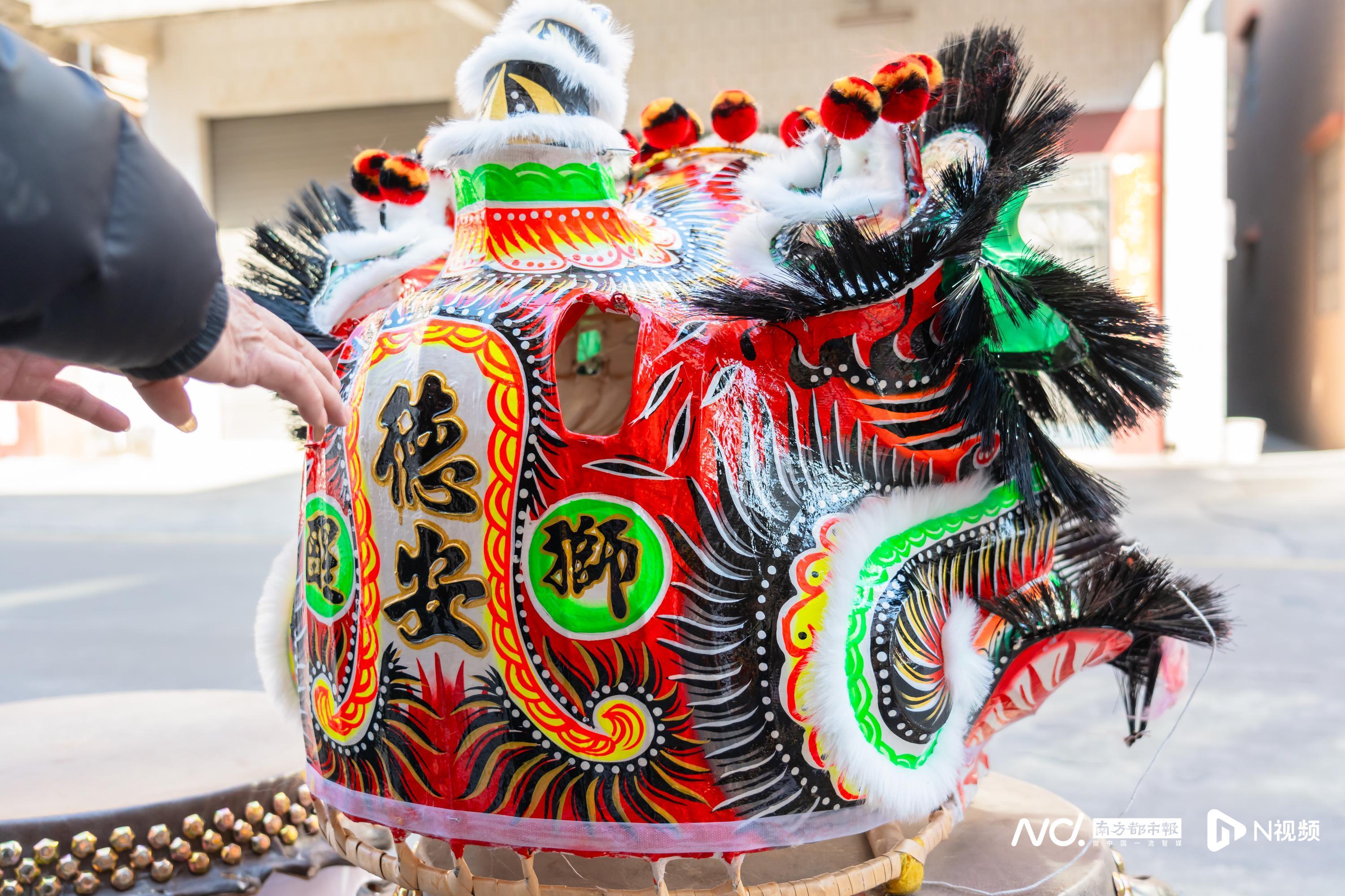 “装狮”则是用马尾毛、鹰毛、羊毛、东谈主造毛等原材料,进行缀毛、上须、装眼等,并在狮额居中位置书写“福”“王”等字。